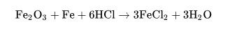 鹽酸一個(gè)最重要的用途是酸洗鋼材。在后續(xù)處理鐵或鋼材(擠壓、軋制、鍍鋅等)之前,可用鹽酸反應(yīng)掉表面的銹或鐵氧化物。通常使用濃度為18%的鹽酸溶液作為酸洗劑來清洗碳鋼:
