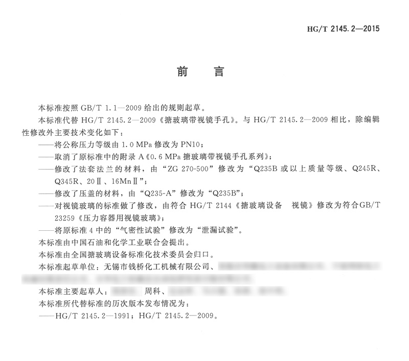HG/T 2145.2-2015搪玻璃帶視鏡手孔化工行業(yè)標(biāo)準(zhǔn)簡(jiǎn)介和下載