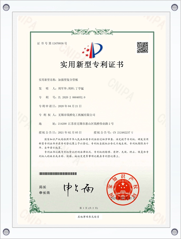 碳化硅換熱器鋼襯四氟管板密封裝置專利證書