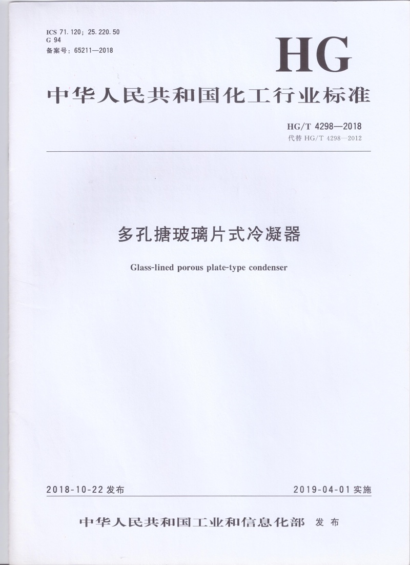 HG/T 4298-2018范圍【多孔搪玻璃片式冷凝器】