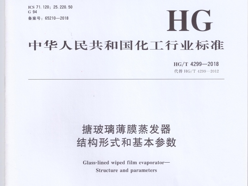 HG/T 4299-2018搪玻璃薄膜蒸發(fā)器【銘牌、出廠文件、包裝、運輸和貯存】