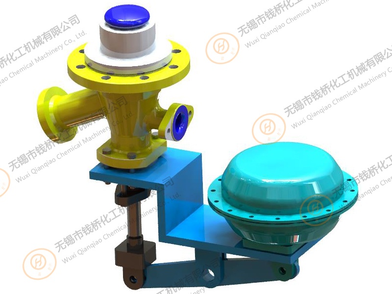 搪玻璃上展式自動放料閥(側向執(zhí)行機構) 閥門采用無間隙結構,波紋填料密封和閥芯緊密裝配,減少泄露的可能。閥芯內(nèi)可以安裝溫度傳感器,檢測物料溫度。該閥門通過氣缸控制自動化程度高,可以遠距離操作,安全可靠,抗腐蝕能力強,氣缸放置在側面,可以節(jié)省徑向空間。